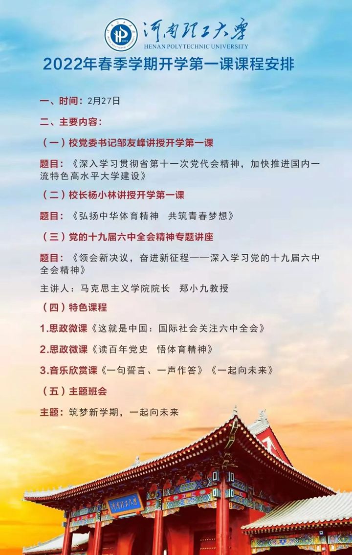 精心设计的思政微课《读百年党史,悟体育精神》《这就是中国:国际社会关注六中全会》,欣赏了音乐学院院长李新现等演唱的原创歌曲MV《一句誓言,一声作答》和该院师生录制的视频《一起向未来》,开展了以“筑梦新学期,一起向未来”为主题的班会。