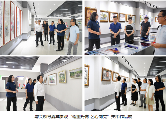 开幕式结束后,与会领导和嘉宾参观了在明德楼三楼举办的“翰墨丹青 艺心向党”美术作品展。