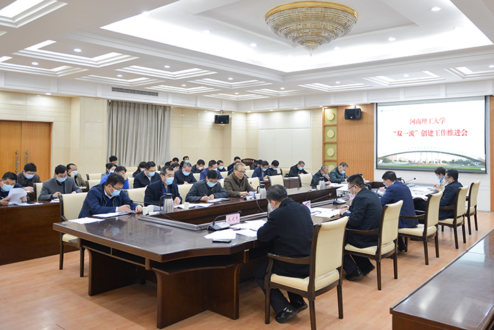 在力行楼一楼会议室召开“双一流”创建工作推进会。校领导杨小林、赵同谦、沈记全、朱建光出席。会议由副校长赵同谦主持。