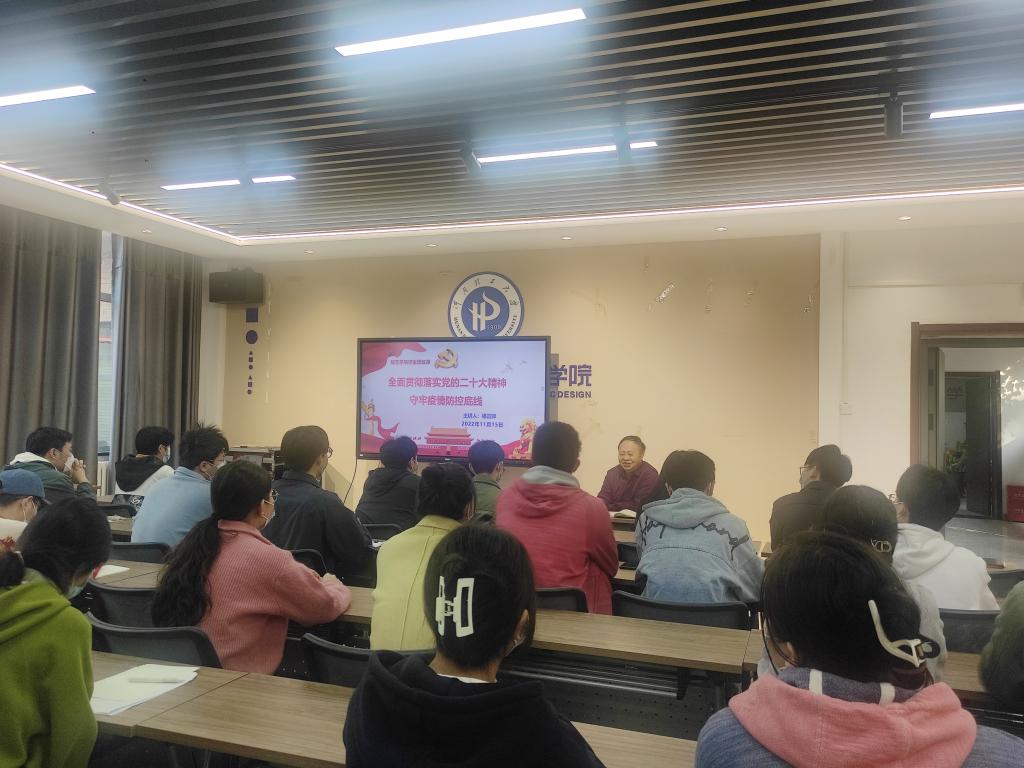 11月15日下午,学院党委书记杨富卿在学院二楼会议室为学生开展两场“全面贯彻落实党的二十大精神,守牢疫情防控底线”思政课。建筑学2020级同学参加了学习。