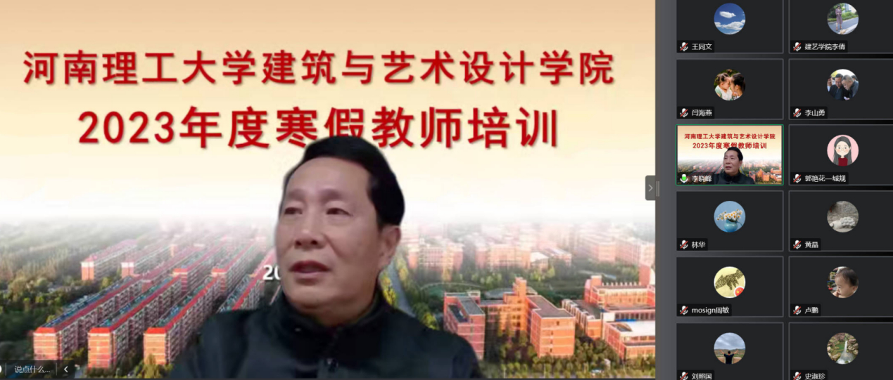 为进一步落实学院立德树人职责,提升教师教学科研水平,1月9日上午华中科技大学建筑与城市规划学院副院长李晓峰教授应学院邀请,通过腾讯会议作了题为《分化与整合:全向-全域-全科的建筑教学探索》的学术报告,全体教师聆听了本次报告并积极参与讨论。