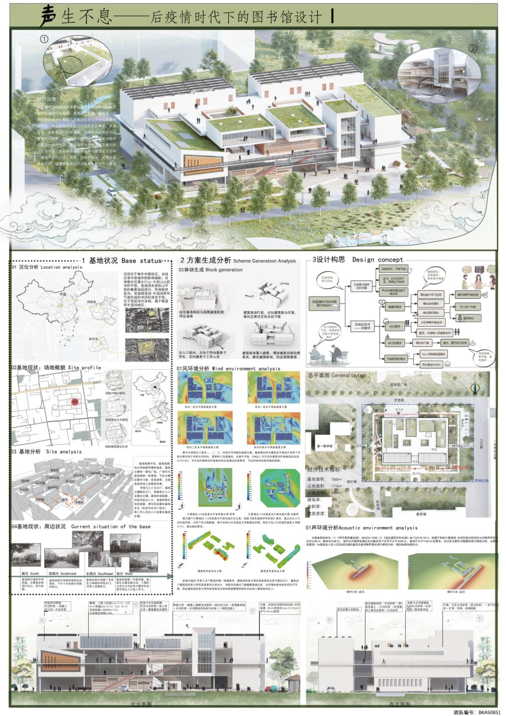 声生不息(三等奖):本设计以后疫情时代为背景,遵循学生为本、服务至上的原则进行设计,高效实施阅读共享空间优化及精准性再造,满足校园师生多元文化的实际需求,从多层次、多维度进行空间再造,为学生创设良好的阅读和学习氛围。空间形式不再拘泥于传统图书馆所谓藏阅一体的形态,而是为学生提供更加丰富的研讨交流空间,为各种规模的多人学习提供交互空间,增添学生们讨论、交流、协作的场地,为师生提供多元化、健康的学习空间是本次设计的主要目的。