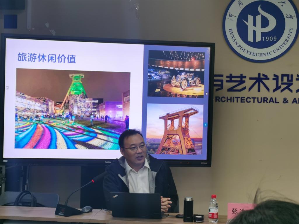 城规系张运兴博士应邀作题为《从“锈”到“秀”——工业遗产保护与更新》专题讲座。本次讲座学院部分教师和研究生参加,设计学重点学科带头人金弘大老师主持。