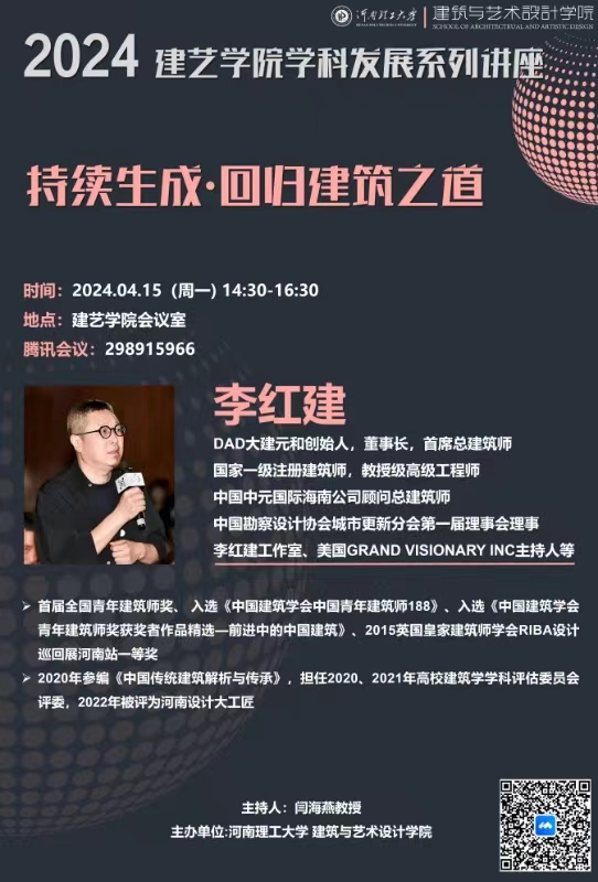 为进一步提升学院教师和学生的科研能力与专业素养,推进教育教学事业高质量发展,4月15日下午,DAD大建元和设计创始人李红建教授在学院大会议室开展了“持续生成·回归建筑之道”的学术讲座,讲座由校教师中心主办、嘟嘟成人网