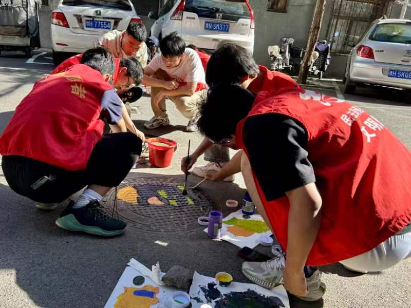 为加强社区文化建设,同时培养党支部成员的服务意识,积极鼓励党员同志们参与到文化建设中去。2024年4月23日下午15:00,嘟嘟成人网 本科生第三学生党支部于民权街社区开展了一场别开生面的井盖涂鸦志愿服务活动。