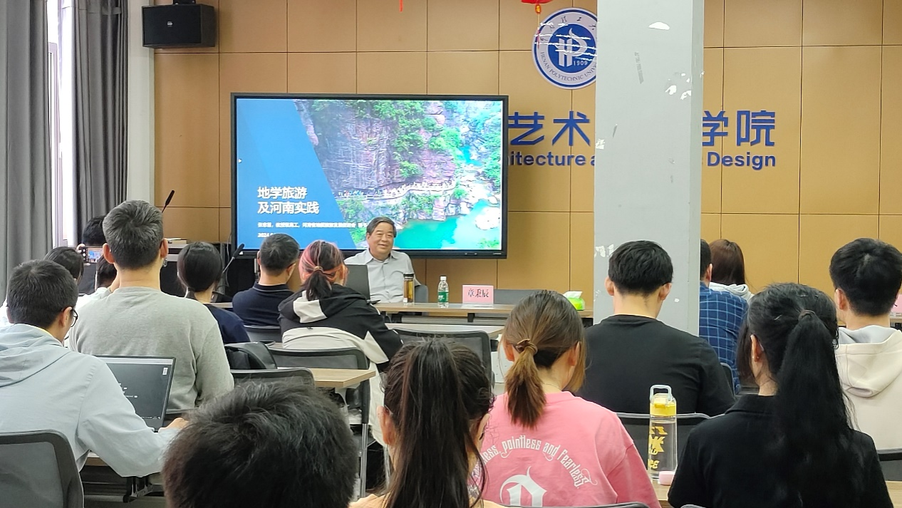 在“地质旅游的河南实践”的报告中,张忠慧结合自身的工作、科研经历,从地学旅游的概念及特点、地学旅游的现状及问题、河南省的地学旅游情况、河南实践典型案例分享、地学旅游发展几点思考、地学概念的探讨等六个方面,详细介绍今后高质量旅游发展方向应以科普为目的,通过讲好故事提高景区吸引力。在第二场报告“旅游视角下感知地质文化”中,章秉辰分别从地质视角和文化视角向学院师生剖析太行山、黄土高原、黄河及云台地貌的形成原理,并分享了怪坡、冰冰背、地坑院和愚公移山等地质文化与人类文化融合的经典案例等。最后,张忠慧、章秉辰两位专家与师生针对地质旅游问题进行了深度的探讨和交流,进一步激发了在场师生的浓厚兴趣,为参会师生提供了新颖的视角和思路。