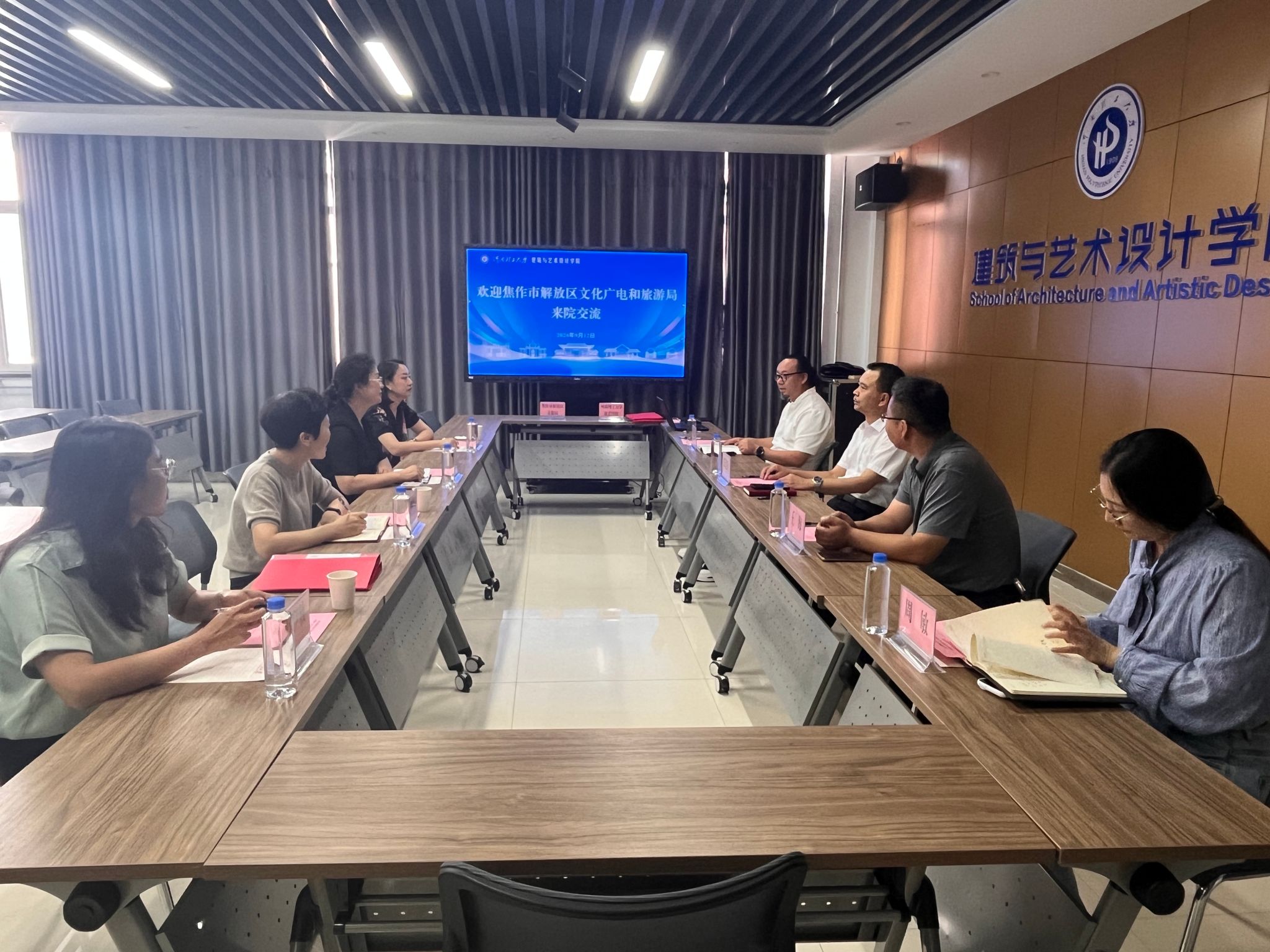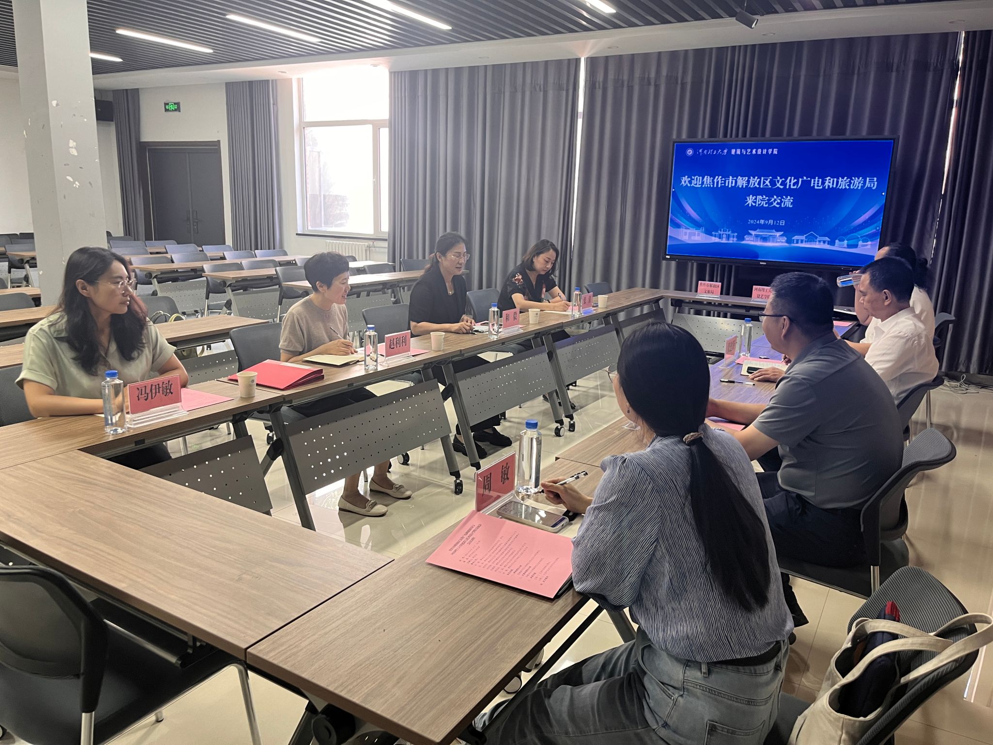 为进一步加强校地合作、促进产教学研融合,9月12日上午,学院与焦作市解放区文化广电和旅游局交流座谈会暨“产教学创研”立体化实践平台建设签约仪式在学院会议室举行。解放区文广旅局党组书记和毅、副局长张倩、旅游发展服务中心主任赵利利、解放文化旅游发展投资有限责任公司董事长冯伊敏、学院党委书记张建新、副院长韩宏斌、视觉传达系主任王海、工业设计系主任周敏出席此次座谈。仪式由副院长韩宏斌主持。