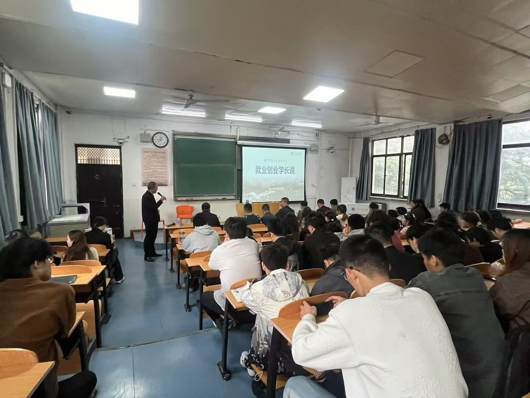 报告会上,2004级校友孙开华以其丰富的生活与工作经验,从生活与工作平衡、价值追求与付出、个人修养等维度进行了分享,指出了职业生涯中精神成长与内心修炼的重要性;2001级校友杨振深入探讨了就业所需的职业姿态与素质,鼓励同学们为未来职业生涯打下坚实基础;校友彭志华通过鲜活案例,诠释了“明德任责,好学力行”的校规校训精神,激励同学们珍惜时光,勇于规划未来,同时强调了积极心态在面对挑战时的关键作用;校友牛俊峰则从习惯养成的角度,分享了如何通过持续练习塑造优秀职业习惯与思维方式的心得;校友李朝阳结合个人创业历程,讲述了人生道路上方向与方法的重要性,鼓励同学们明确目标,坚定方向,不懈奋斗,以实现梦想。