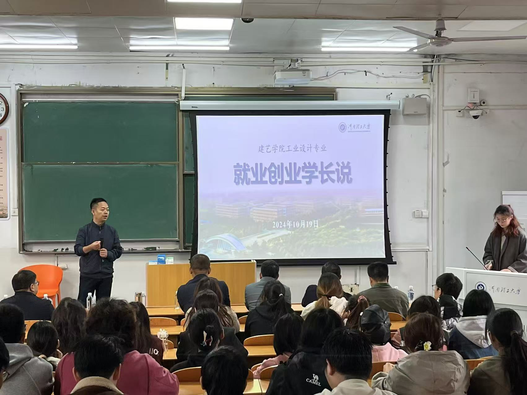 于向涛和王海涛对校友们的精彩分享表达了由衷的感谢与自豪,并寄语同学们从前辈智慧中汲取力量,为未来的就业创业之路蓄力前行。此次分享会不仅为工业设计专业的学生铺设了就业创业的宝贵经验,更激发了他们对未来的无限憧憬与坚定信心。