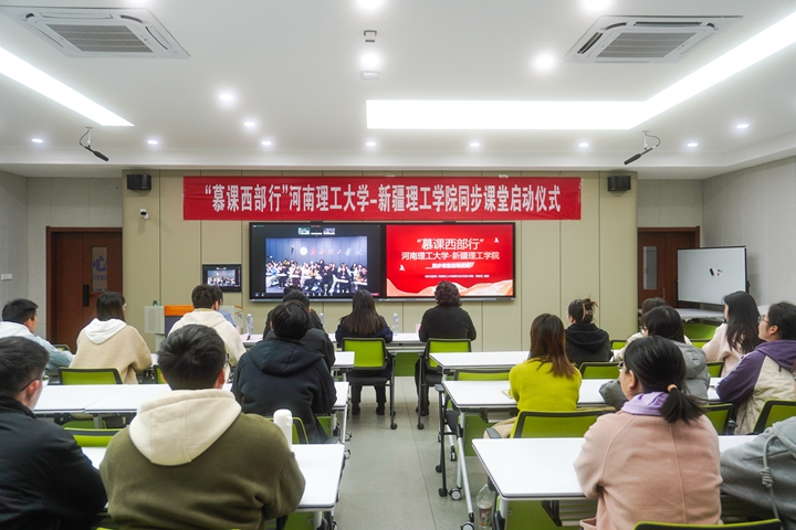 丁亚红致辞,她向新疆理工学院师生介绍了我校的基本情况和课程资源建设的成效,并指出我校将持续做好教育援疆工作,鼓励更多教师参加“慕课西行”计划,通过“同步课堂”给西部学生带去更多优质课程。她期望以此同步课程启动为契机,通过跨时空跨地域的教学合作,推动优质教育资源共享,促进教育公平发展,为推动中西部教育的高质量发展贡献更多的智慧和力量。