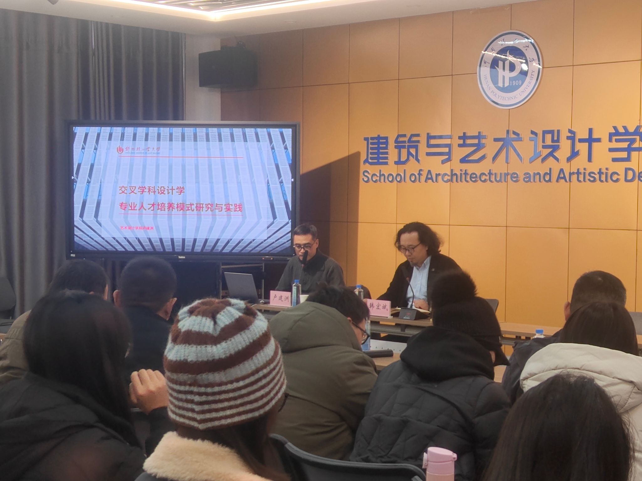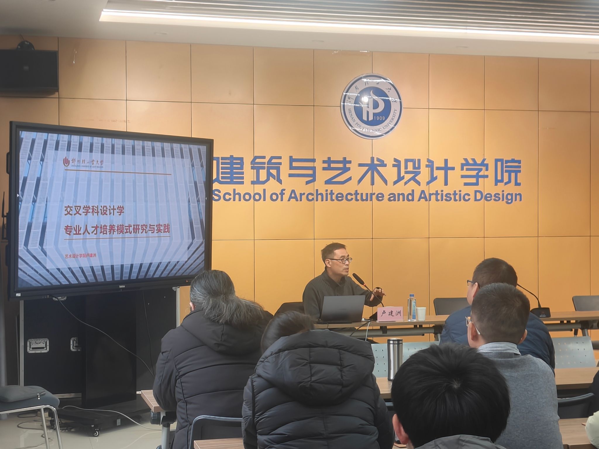 进一步增强学院设计学学科发展内涵,提升设计专业教师队伍的教学与科研能力,学院于12月24日邀请郑州轻工业大学艺术设计学院副院长卢建洲,就“交叉学科设计学的人才培养模式研究与实践”这一主题进行专题讲座。此次讲座由副院长韩宏斌主持,视觉传达设计、环境设计、工业设计等相关专业教师,以及2023级和2024级设计专业的全体研究生共同参与。