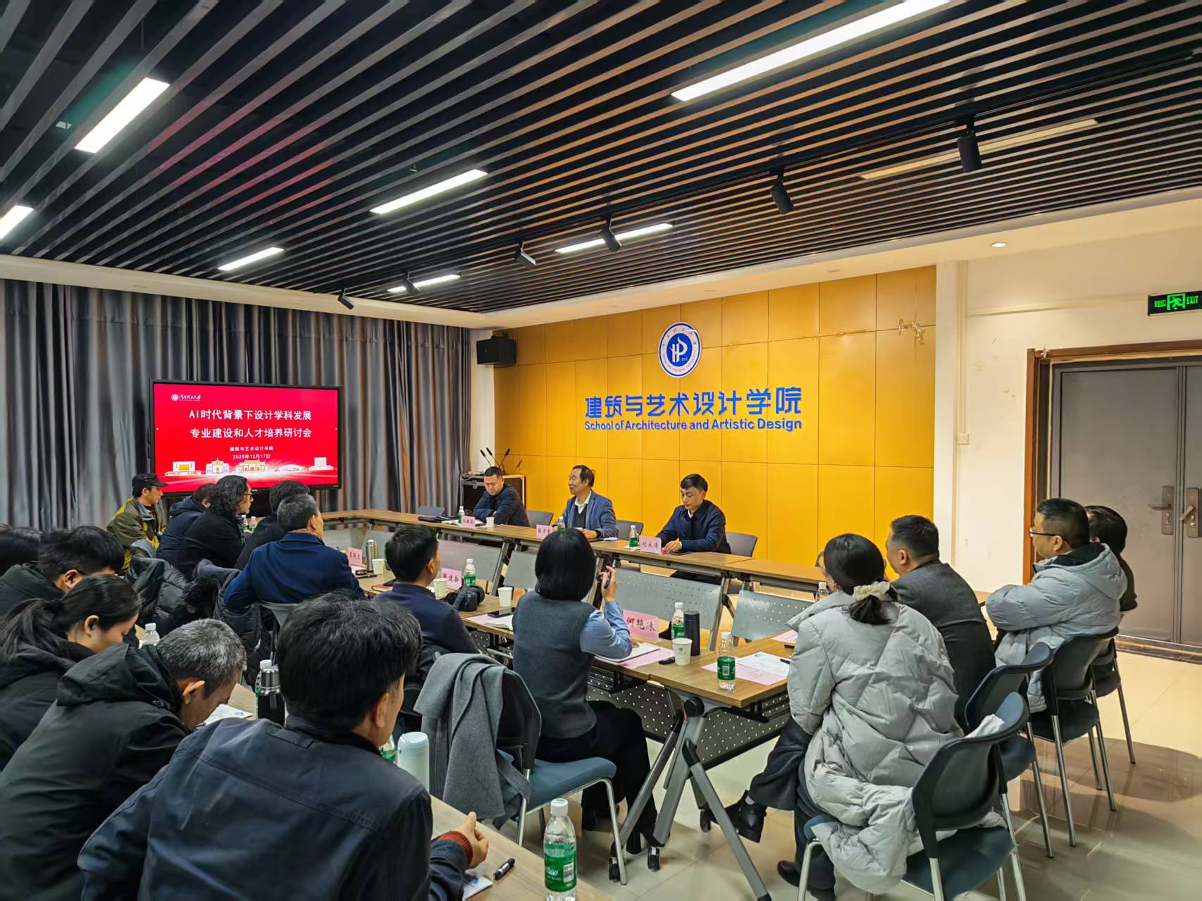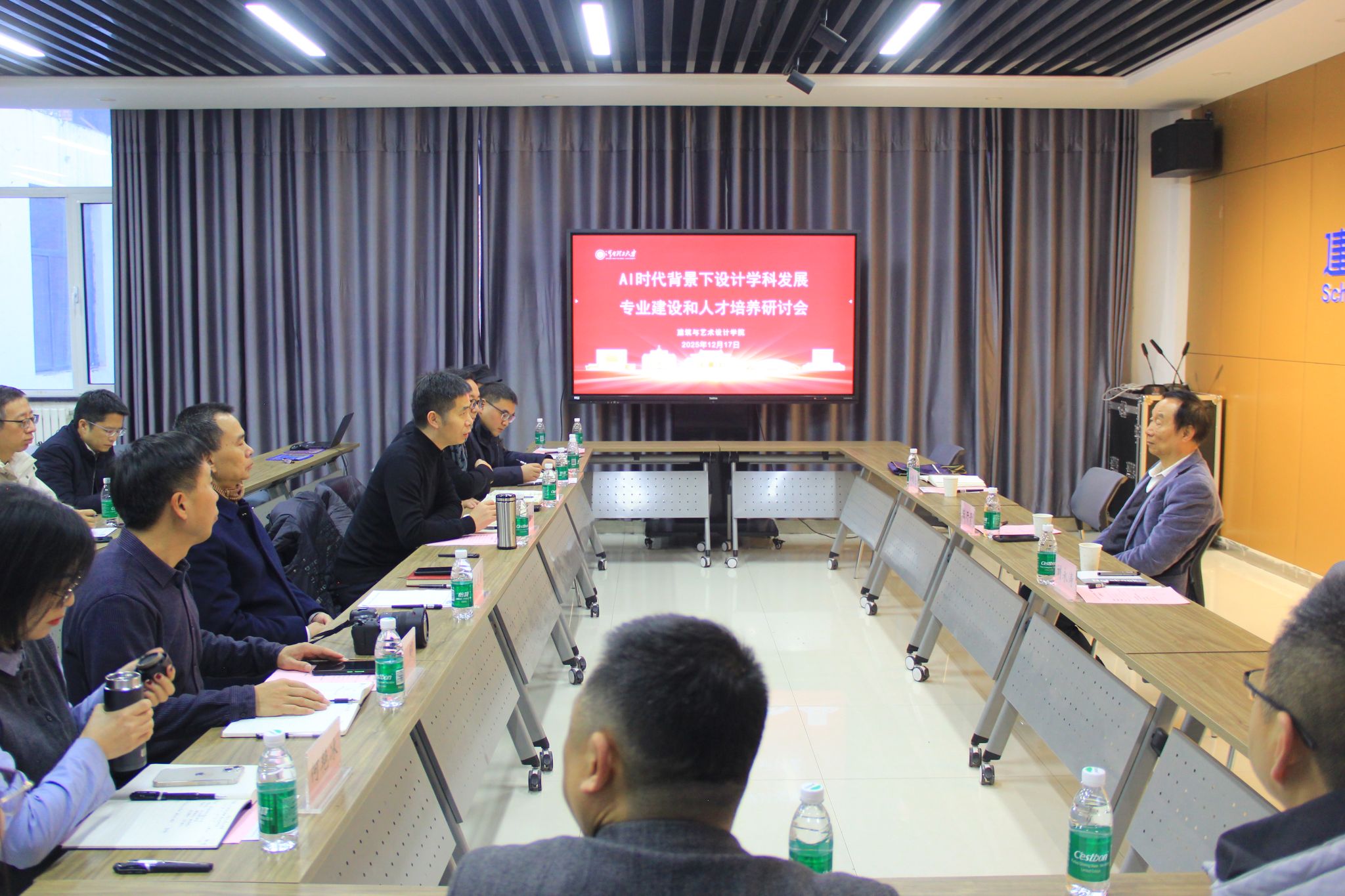 为了主动适应人工智能技术快速发展带来的新机遇与新挑战,深入探讨设计学科在AI时代的转型路径,12月17日下午,学院在大会议室成功举办AI时代背景下设计学科发展专业建设和人才培养研讨会,陈汗青教授应邀出席。校党委书记刘永涛、校党委办公室副主任孙超伦、学院党委书记张建新、院长王同文、党委副书记张明、副院长韩宏斌、副院长何艳冰、设计专业支部书记、系室主任以及骨干教师参加了本次会议。